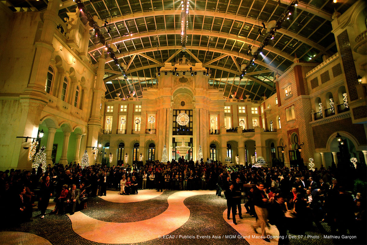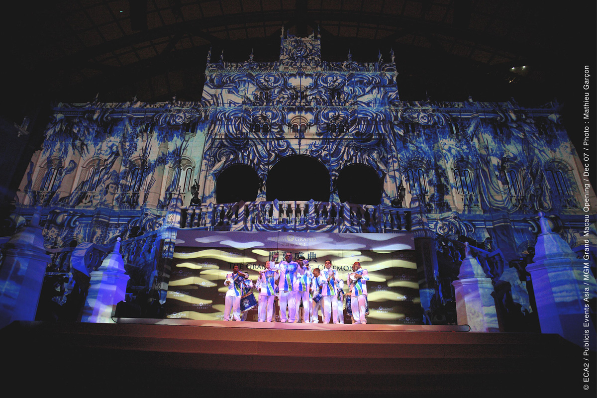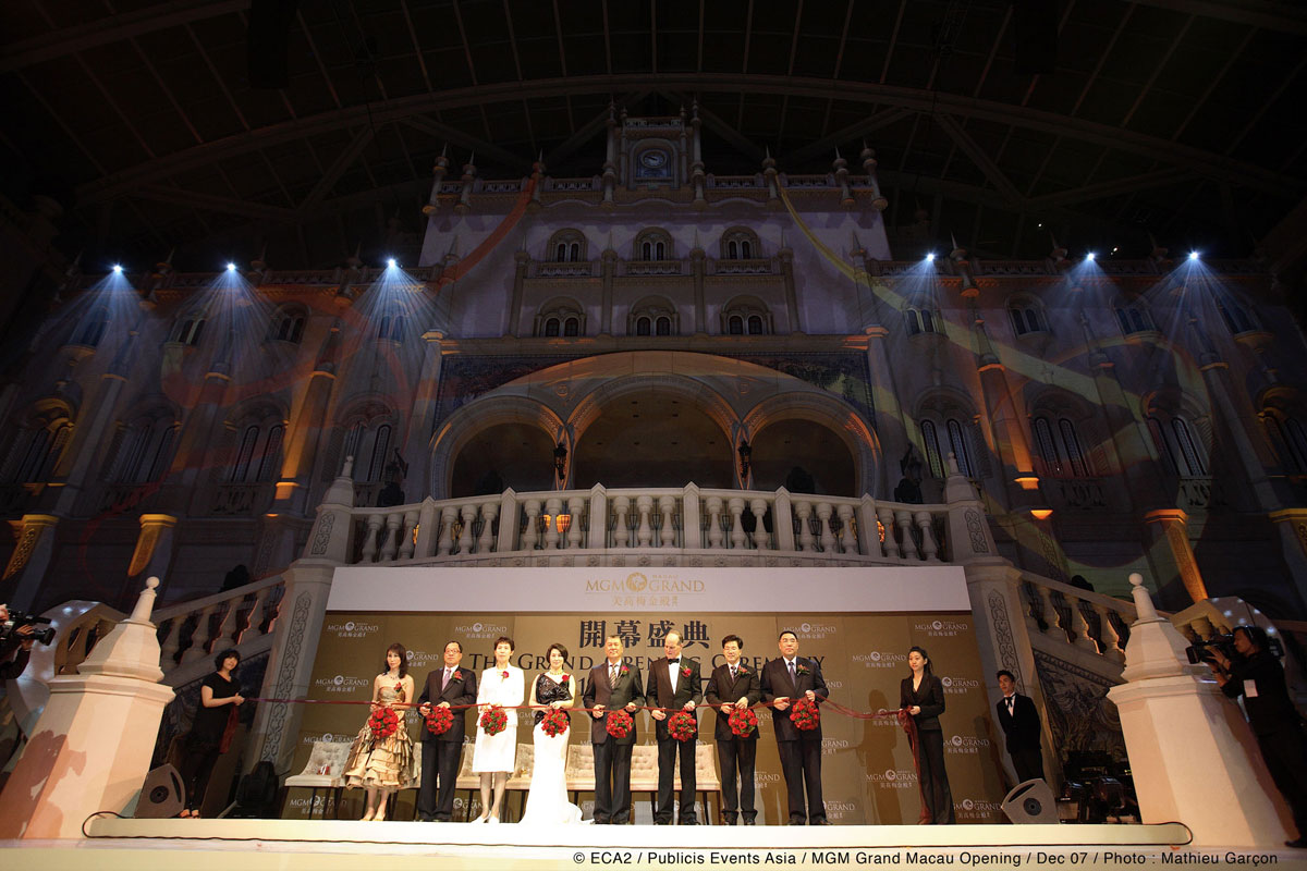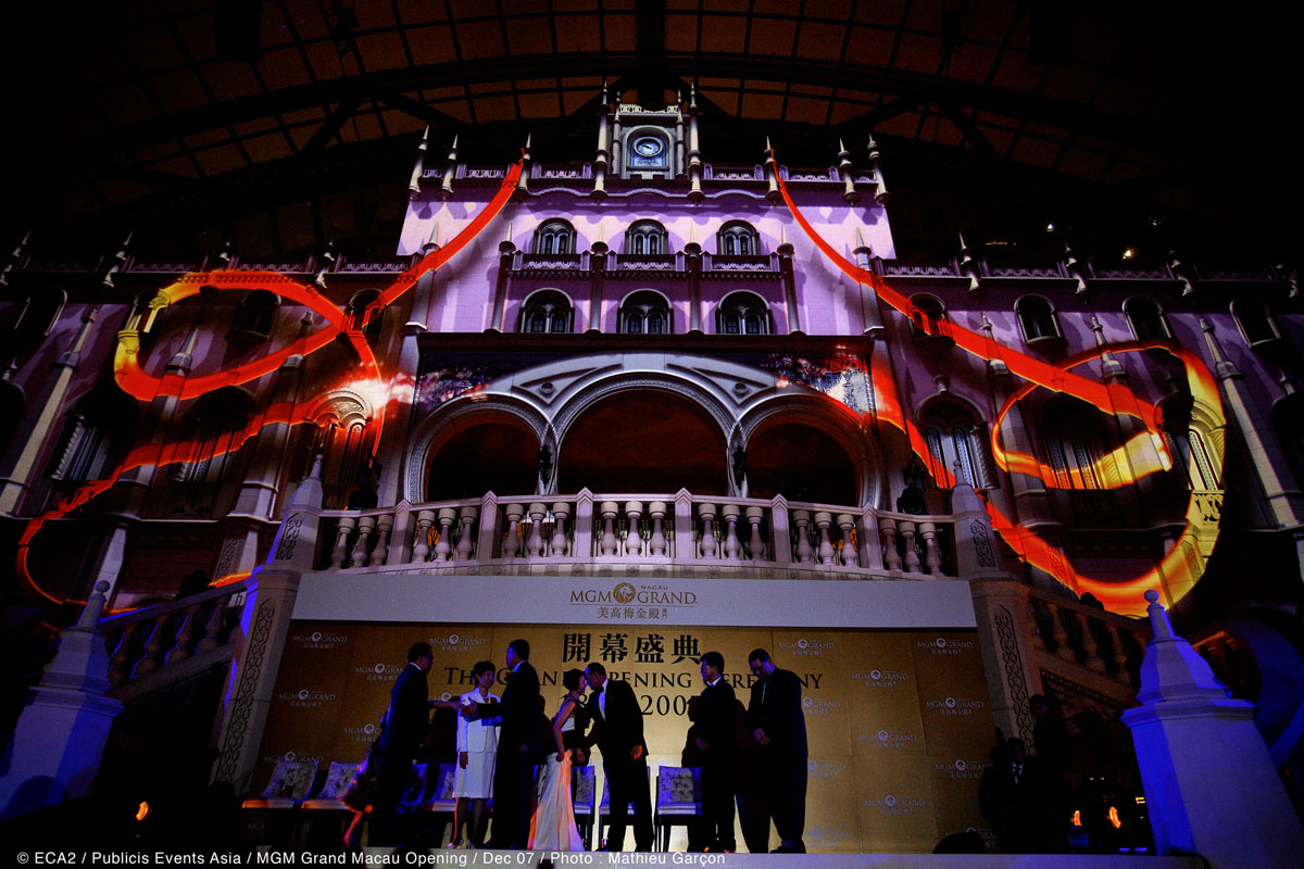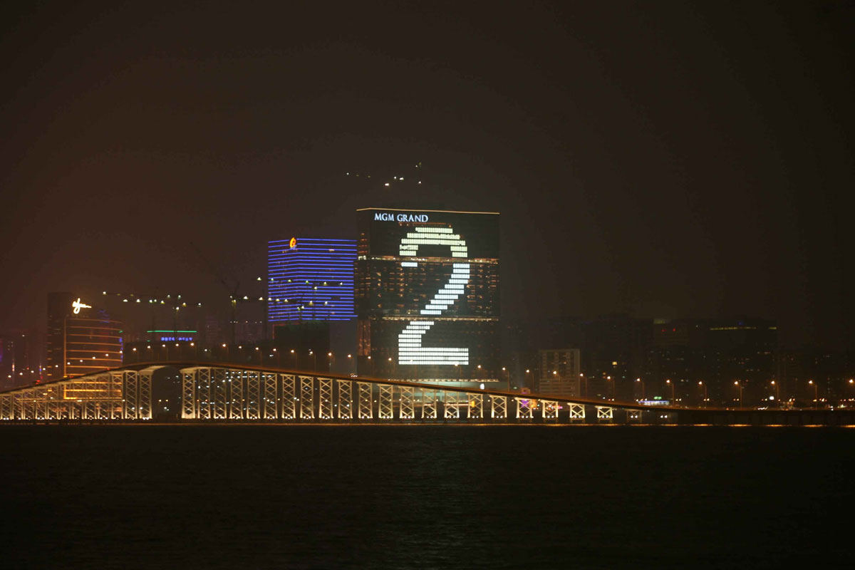1,600 VIP guests were invited to a unique and lavish evening show to celebrate the opening of the MGM Grand Casino of Macau. A spectacular giant countdown to this signature show appeared on the building facade, which was transformed into a screen.