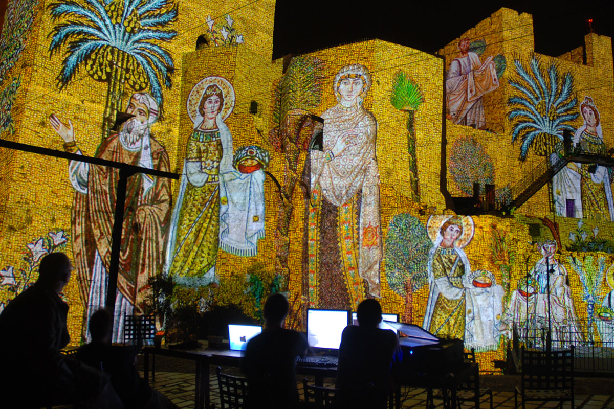 The Night Spectacular uses trompe l’oeil technology – the stones of the walls and structures fade into the scenes and the screened images envelop the viewers and whisk them off to a one-of-a-kind multi-sensory experience.