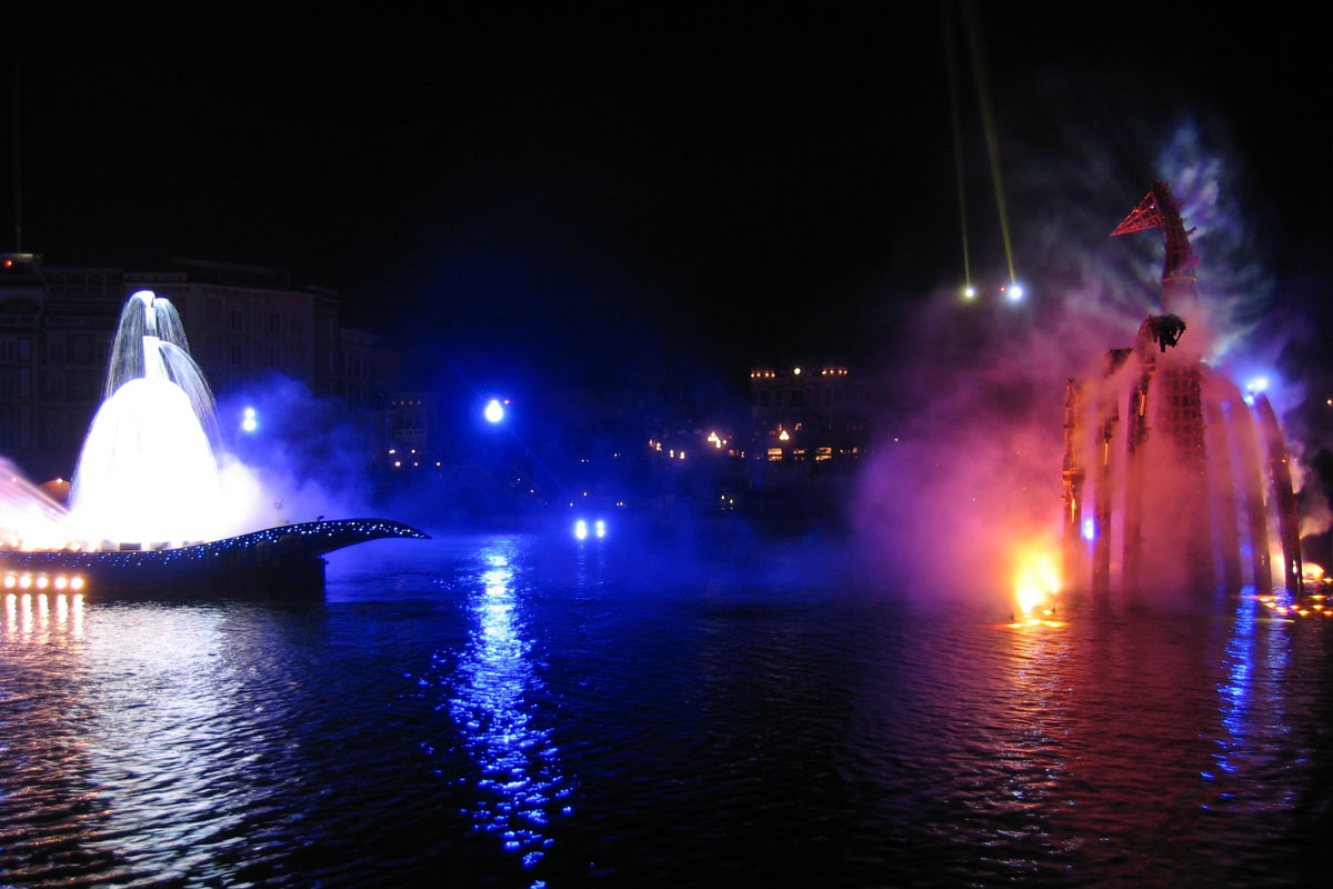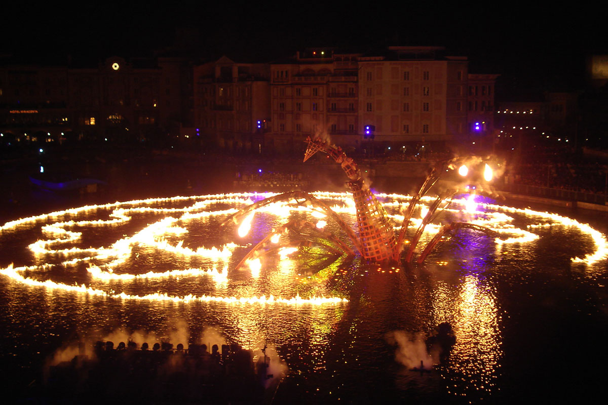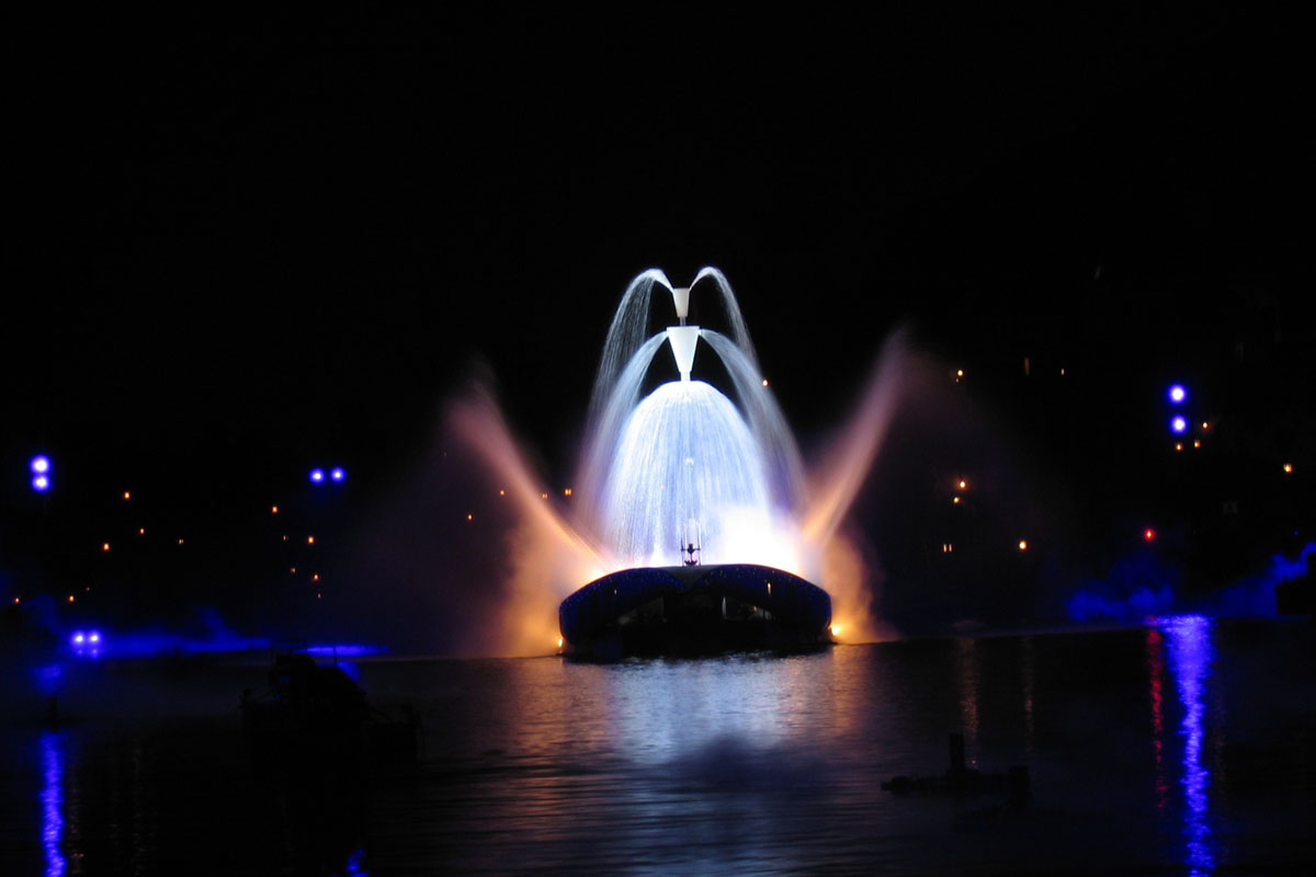 BraviSEAmo! was a nighttime water show at Tokyo DisneySea. The show featured water, pyrotechnic, and firework effects and was performed on the lagoon of the Mediterranean Harbor.